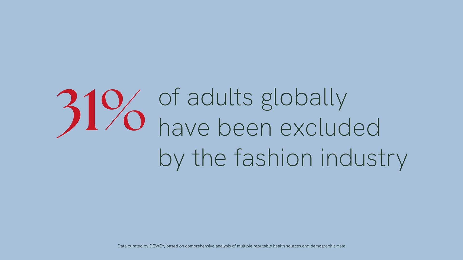 Some key supplementary information which was not conveyed in the interviews was required so I designed and animated several graphics slates based on DEWEY's brand guidelines. These are intercut at various points to convey data in an impactful but minimalistic style in-keeping with the brand. They also helped provide some breathing room between interview clips.